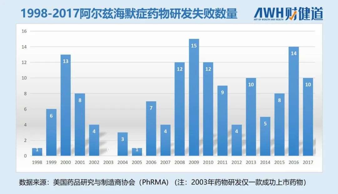 阿尔茨海默病药物研发之路,任重而道远。自1993年第一个治疗性的胆碱酯酶抑制剂药物上市以来,全球批准用于阿尔茨海默病,用于改善患者的临床症状的药物仅7种;礼来、阿斯利康、强生、辉瑞、罗氏等全球各大制药公司在过去的20余年里,相继投入近千亿美元研发,但绝大多数进入临床III期研究的药物,也以失败告终。这为相关药物研发蒙上了一层阴影。