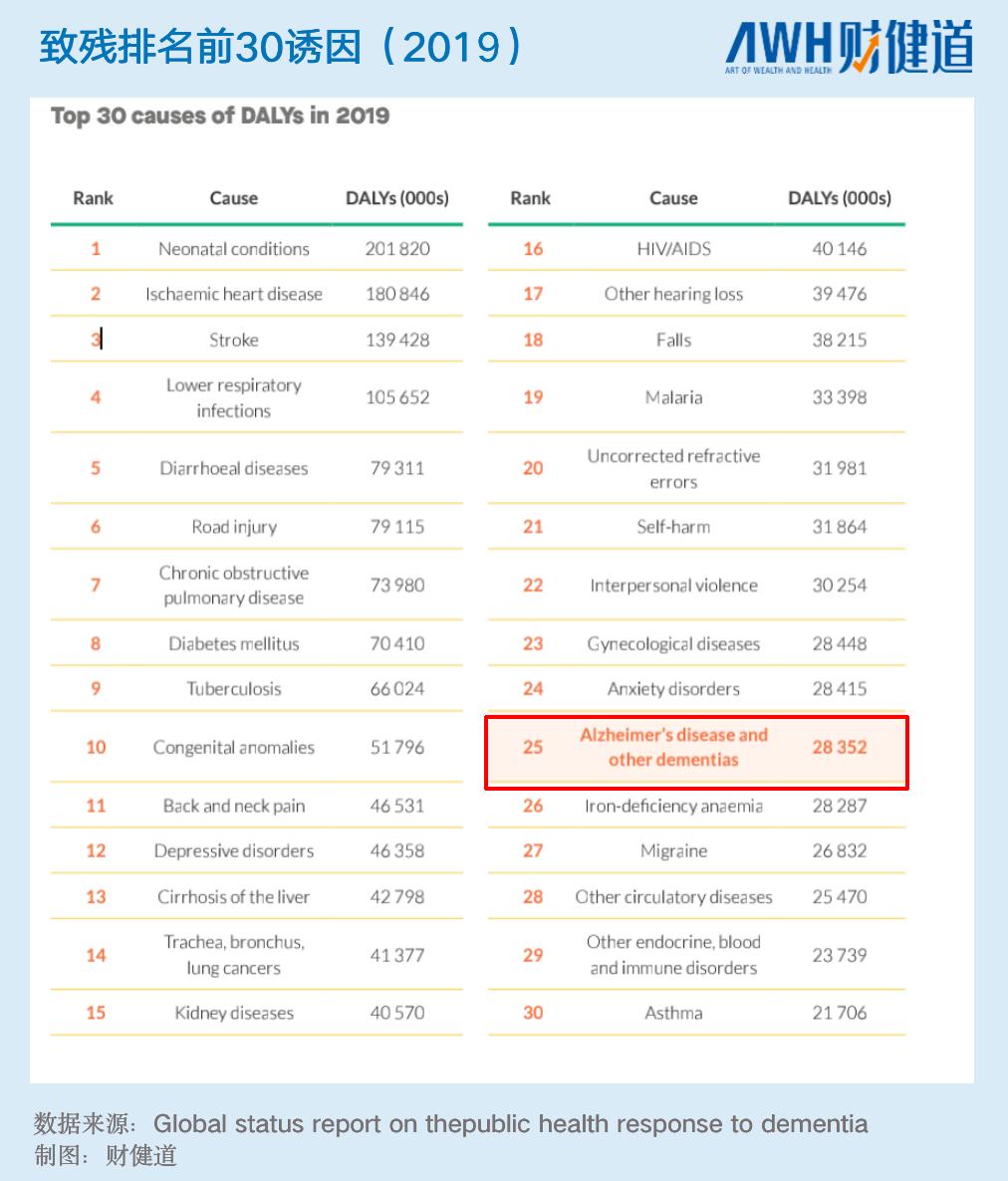 作为一项困扰不少家庭的难疾,老年痴呆症的发病机制仍然不被世人知晓,药物研发也处于瓶颈期。作为公共卫生未解难题,至2019年,阿尔茨海默病和其他痴呆症,成为肺癌之后的全球第七大致死原因。