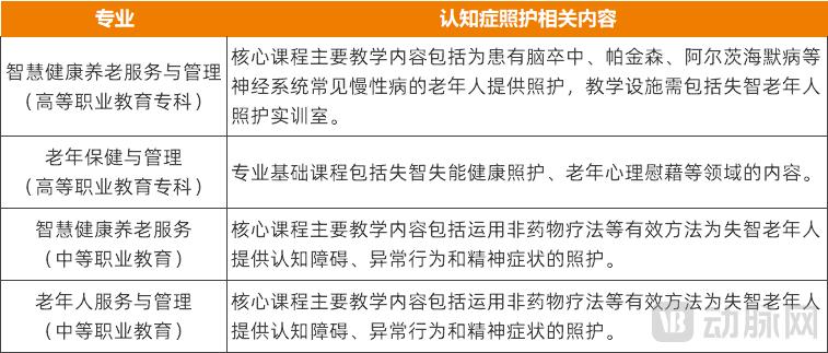 部分职业教育专业中认知症照护的相关内容,资料来源:教育部