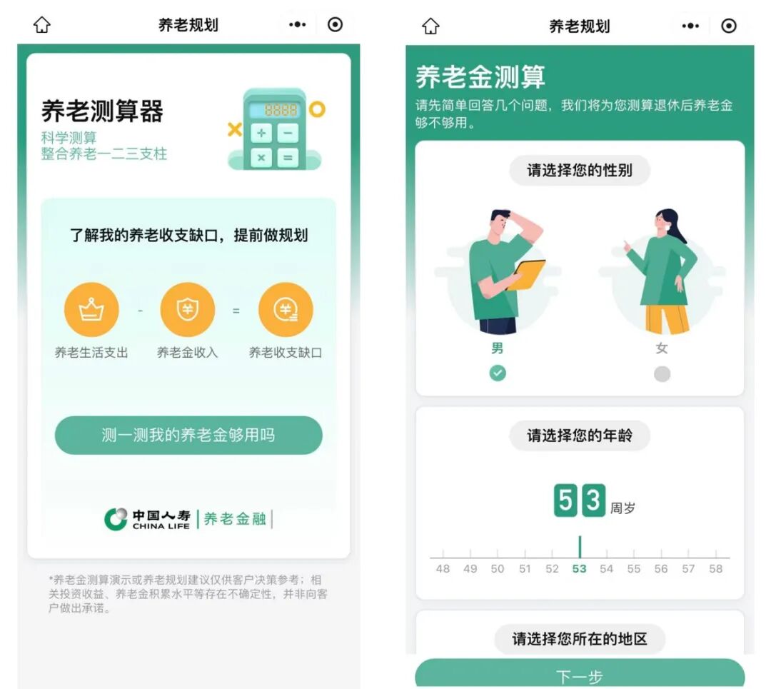 (中国人寿推出的养老规划预测工具)